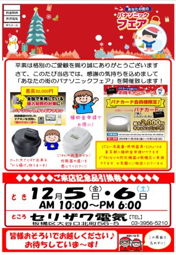 長引く夏に連日振り回され バタバタの毎日でしたが 気が付けば今年も冬のパナソニックフェアの季節となりました